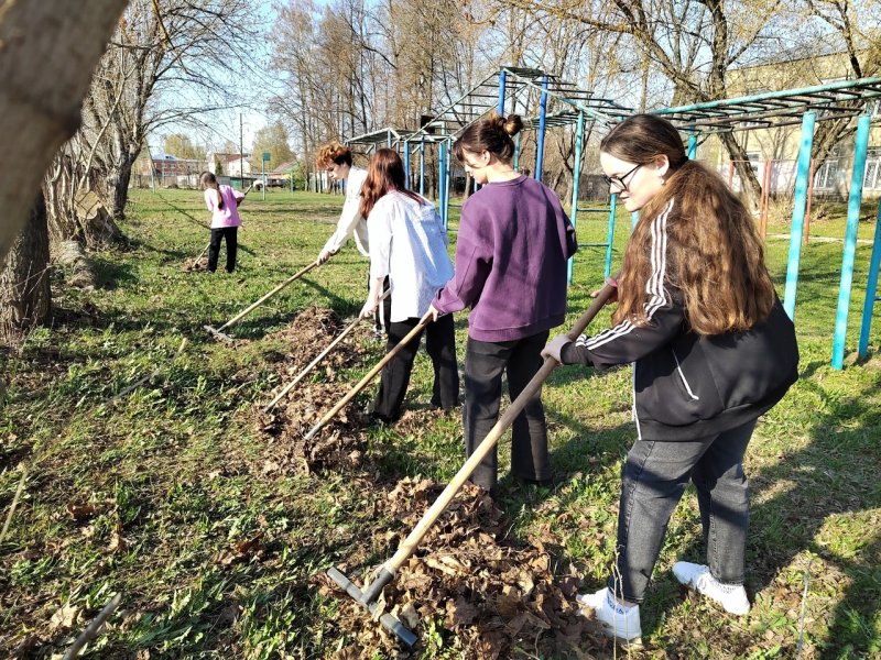 После творческой части, активисты центра отправились на небольшой субботник, собрали мусор и сухую листву с территории учреждения.