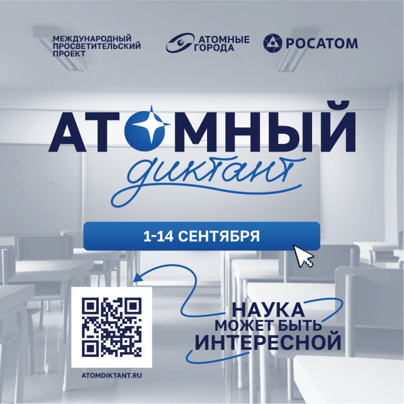 с 1 по 14 сентября в онлайн-формате на платформе atomdiktant.ru проводится «Атомный диктант»