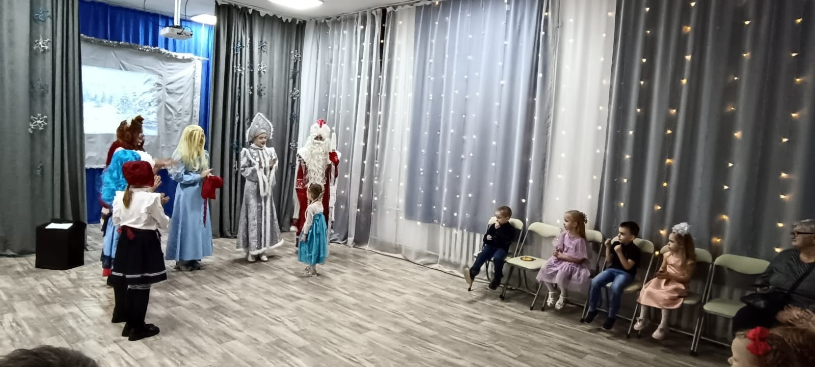 С самого начала мероприятия детей окружила радостная атмосфера — сверкающие гирлянды, мерцающие огоньки и звуки новогодних мелодий создавали настроение праздника.