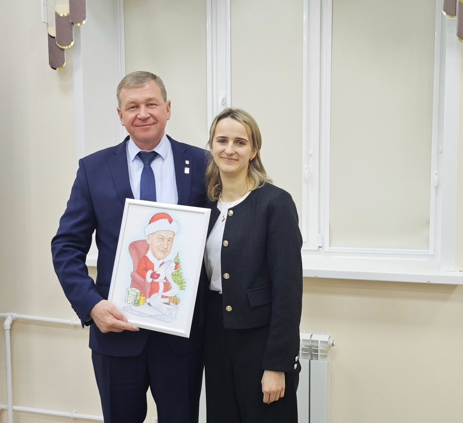 А от ребят центра творчества "Апельсин" Анатолий Захарович получил замечательный портрет, где глава администрации предстал главным Дед Морозом Камешковского района!