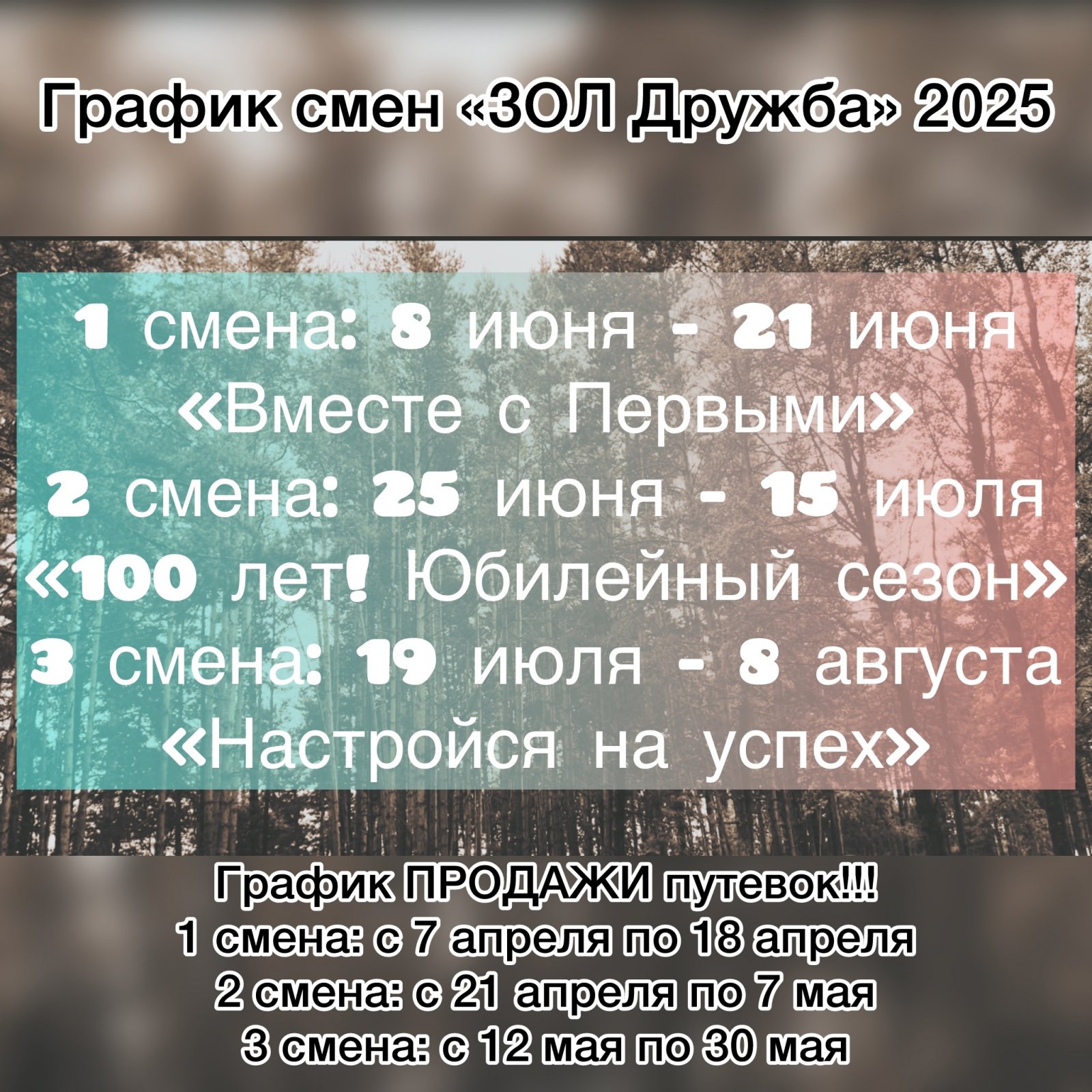 Дорогие наши ребята и их родители, мы знаем что вы очень ждете старта продажи путевок. Но просим вас еще немного подождать и внимательно ознакомиться с датами смен и правилами продаж путевок.
