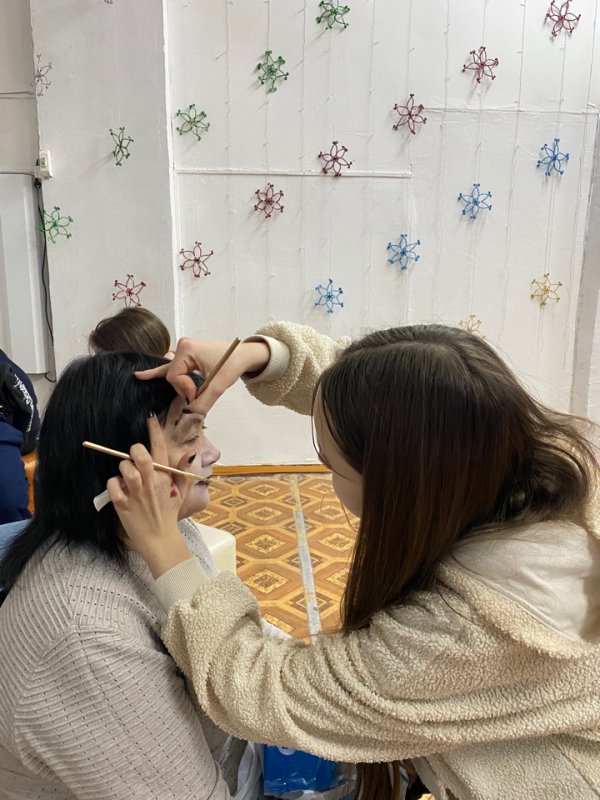 Грим - это средство перевоплощения актёра, с его помощью можно состариться или помолодеть, изменить форму носа иди наоборот подчеркнуть уже существующую. В рамках обучения у ребят не только было много практики в перевоплощении себя с помощью грима, но также много теории о гигиене грима и профессии гримера.