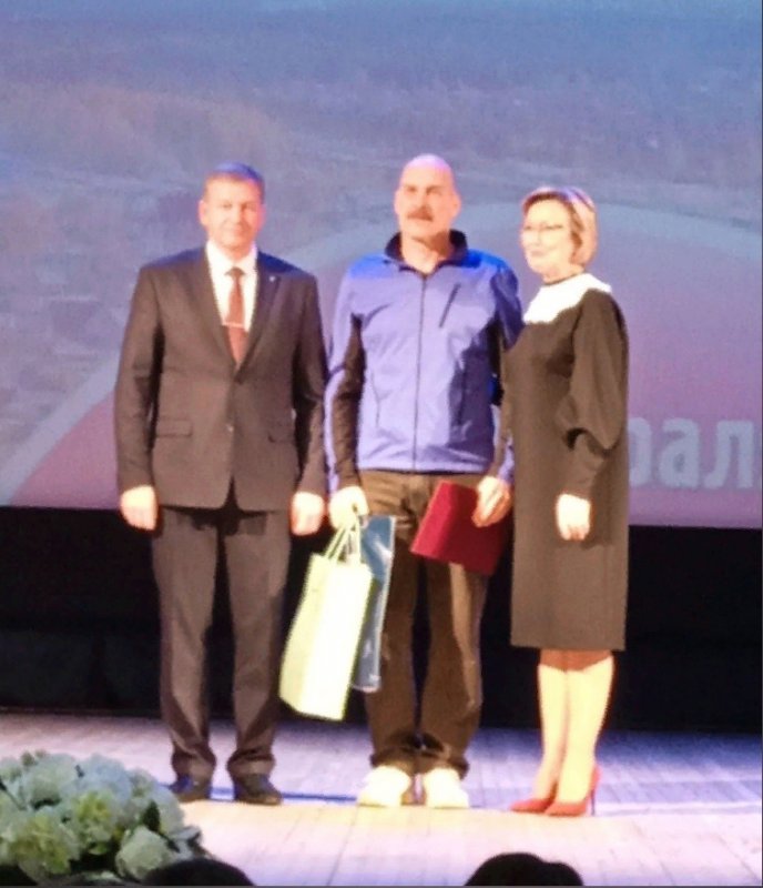 На праздничном концерте было много пожеланий, поздравлений и, конечно же, награждений. Наш заслуженный педагог, Балюлин Юрий Вячеславович, получил из рук главы Камешковского района Анатолия Захаровича Курганского Почетную грамоту за многолетний добросовестный труд, большой личный вклад в дело развития детско-юношеского туризма Камешковского района.